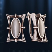 Ohrringe mit Ulexit-Einsatz (14 x 7 mm), Zirkonium ¢ 1 mm. Die Beschichtung besteht aus geschwärztem Silber. Elegant und süß!