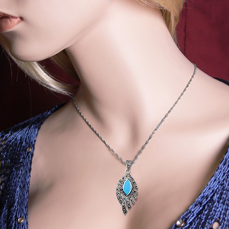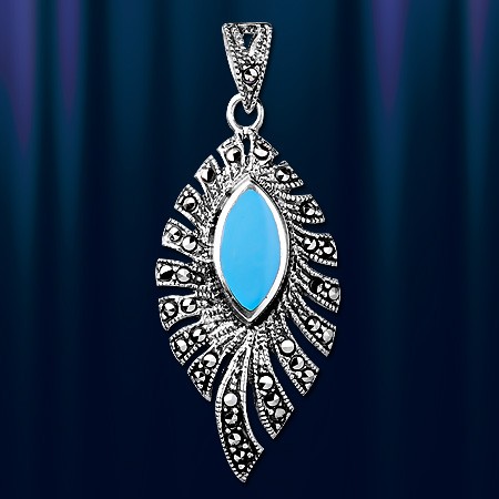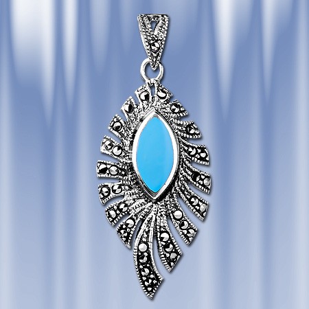 Anhänger aus geschwärztem 925er Silber mit Türkis und Markasit. Länge mit Auge ca. 45 mm. Breite ca. 20 mm.