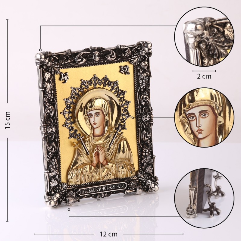 Ikone der Muttergottes mit den sieben Pfeilen – eine solide und stilvolle Ikone – ein ausgezeichneter Kauf für Sie selbst oder als Geschenk.