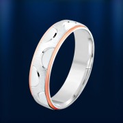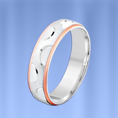 Origineller, modischer zweifarbiger Ehering aus 585er Rot- und Weißgold (matte und glänzende Textur)