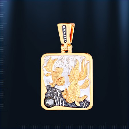 Anhänger aus geschwärztem 925er Sterlingsilber, 999er Sterling vergoldet. Einsatz: Zirkon ¢ 4 mm. Oben am Anhänger befindet sich ein Ring für eine Kette.