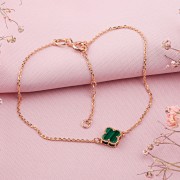 Rotgold mit Malachit setzt einen dezenten Akzent, der den Geschmack ohne Umschweife unterstreicht. Das vierblättrige Miniaturkleeblatt sieht ordentlich und raffiniert aus und verleiht dem Bild einen Hauch von Grafik und Noblesse.