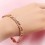 Goldarmbänder an der Hand aus rotem Gold 585 -Armband mit einer Diamantlinie. Ein massives Armband mit einer funkelnden Diamantlinie aus rotem Gold der 585. Probe im Schalenweben. Aufgrund der speziellen Verarbeitung von Links wird der Figaro -Webeneffekt erzeugt. Das Armband wird sowohl den Griff einer soliden Frau als auch einer jungen Frau perfekt dekorieren. Goldarmbänder schaffen die notwendige Betonung des Bildes und erregen die Aufmerksamkeit für Wohlstand und Luxus von Accessoires, da Gold schön, stilvoll, schick und teuer ist. Dieses Produkt wird Ihre hohe Raffinesse und Ihren tiefen Sinn für Stil betonen.