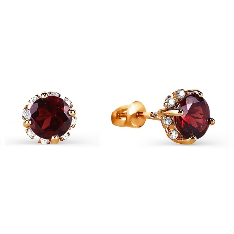Rotgold sind mit einem leuchtend saftigen Granat mit brillantem Feinfacettenschliff verziert.