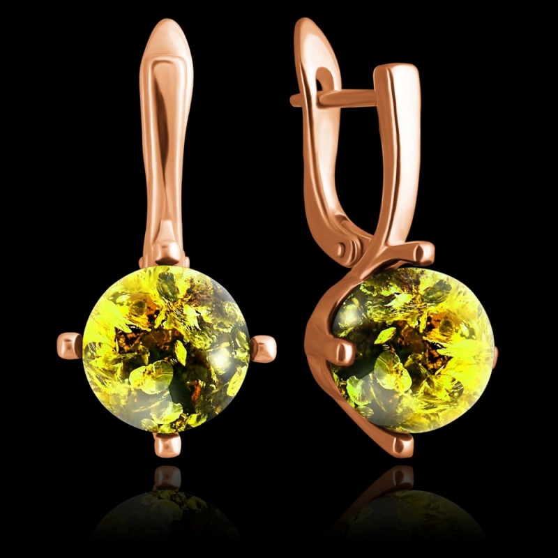 Wunderschöne Ohrringe aus 925er Sterlingsilber mit Vergoldung und Bernstein, wobei dieses erstaunliche „Stück Sonne“ mit allen Grüntönen spielt. Eine einzigartige Gelegenheit, Ihre Individualität zu betonen und Ihrem Image Weiblichkeit, Sonnenschein und Zärtlichkeit zu verleihen.