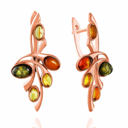 Vergoldete Ohrringe Tricolor Bernstein Wunderbare Ohrringe aus Silver 925 -Proben mit rotem Vergoldung und Bernstein mit diesem erstaunlichen „Stück der Sonne“, das mit allen Schattierungen von Honig, Cognac und grüner Farbe spielt. Eine einzigartige Gelegenheit, Ihre Persönlichkeit hervorzuheben, das Bild von Weiblichkeit, Sonnigkeit und Zärtlichkeit zu geben.