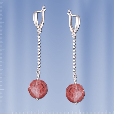 Wunderbare, elegante und ausdrucksstarke Ohrringe mit schönen Einsätzen aus rosa Quarz ¢ 15 mm
