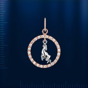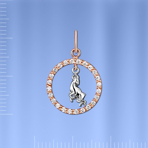 Runder Anhänger Sternzeichen „Widder“ aus Rot- und Weißgold 585°, verziert mit funkelnden Zirkonia