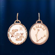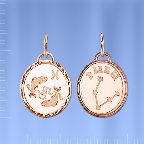 Ovaler Anhänger Sternzeichen „Fische“ in rotem russischem Gold 585°