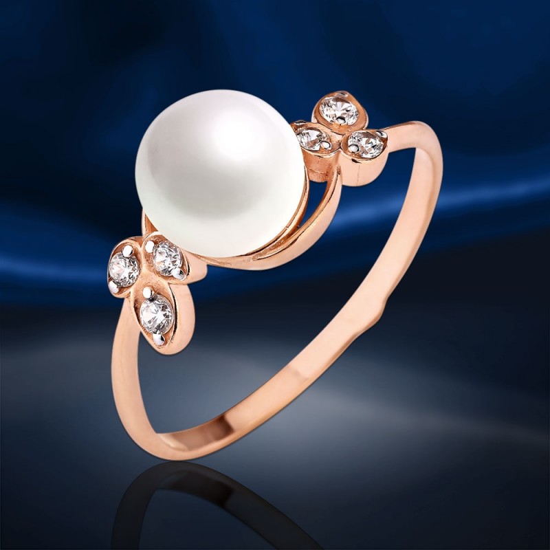 Bezaubernder Ring aus 925er Sterlingsilber mit massiver Goldauflage, mit einem Einsatz aus funkelnden Zirkonia und einem Kult. weiße Perlen.