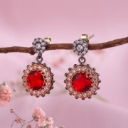 Schicke Ethno-Ohrhänger im osmanischen Stil, handgefertigt aus geschwärztem 925er Sterlingsilber mit einem großen Einsatz aus Granat und funkelnden Zirkonia in einem Bronzerahmen!
