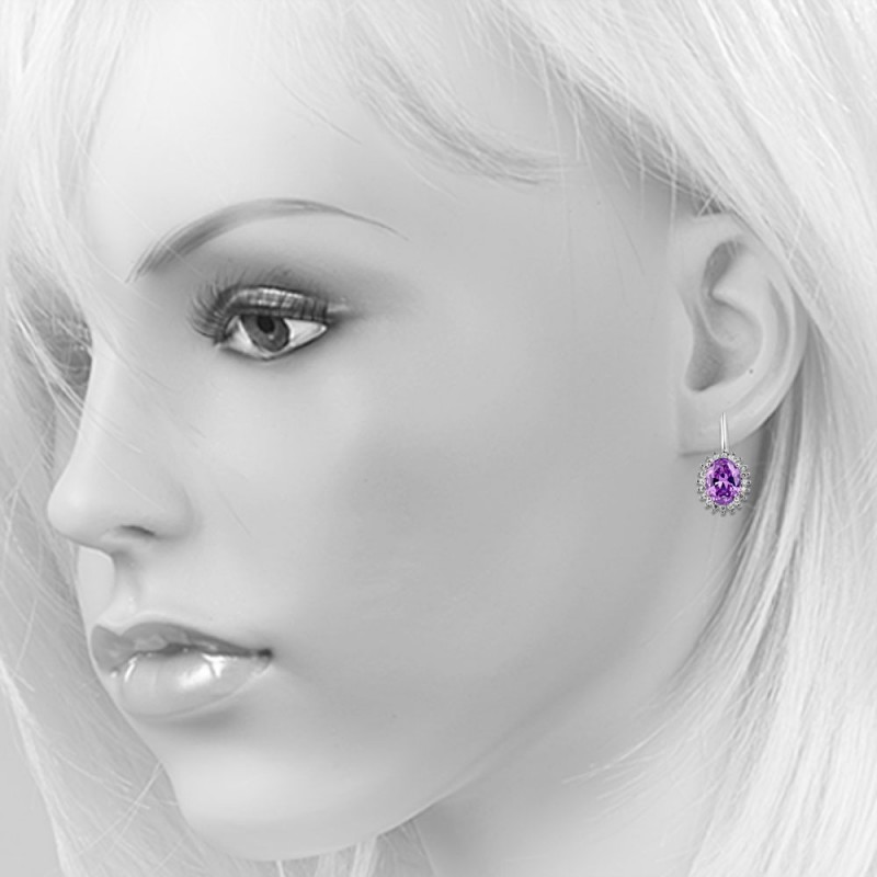 Schicke Ohrringe sind aus 925er Sterlingsilber gefertigt, verziert mit bezauberndem Amethyst und funkelnden Zirkonia! Diese Ohrringe strahlen Chic und Unwiderstehlichkeit aus. Mit ihnen werden Sie in jedem Outfit attraktiv sein!