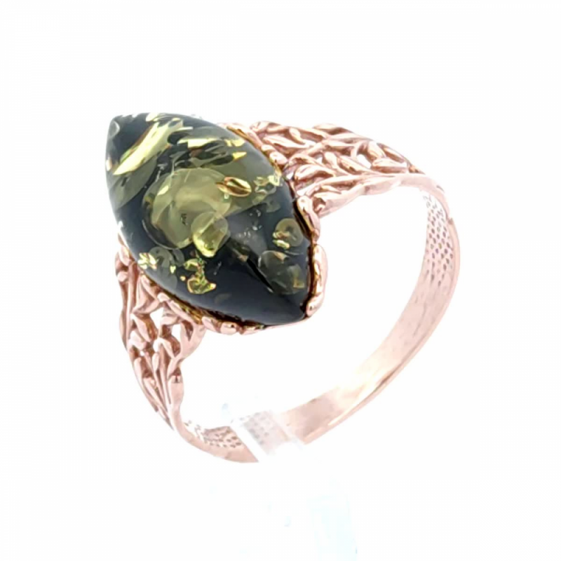 Ein vergoldeter Ring mit grünem Bernstein. Ein charmanter Ring aus silbernen 925 -Proben mit einem soliden vergoldeten und bernsteinfarbenen, der mit allen grünen, bezaubernden und faszinierenden Tönen mit seiner Schönheit spielt, wird Sie immer erfreuen! Der Ring betont perfekt die Zärtlichkeit, den Charme und die Natürlichkeit Ihrer Schönheit und achtet auf die Weiblichkeit Ihrer Hände.
