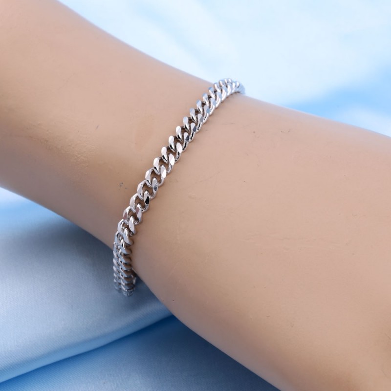 Klassisches Armband aus 925er-Silber, Panzergeflecht, diamantiert und rhodiniert. Das Weben von Panzerketten ist heute eine der beliebtesten Arten von Halsschmuck. Diese Art des Strickens ist vielfältig, schön und praktisch. Die vielschichtige Politur der Glieder verleiht ihnen Glanz und Attraktivität. Das Weben von Rüstungen ist langlebig und zuverlässig. Perfekt für Frauen und Männer!