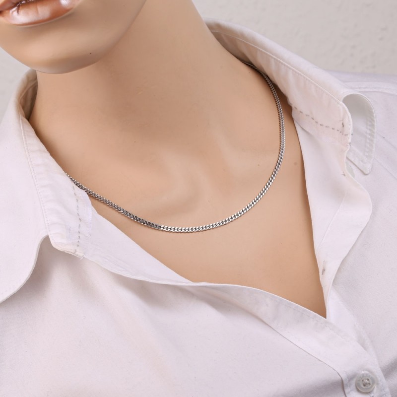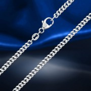 Klassische Kette aus 925er-Sterlingsilber, diamantiert und rhodiniert. Das Weben von Panzerketten ist heute eine der beliebtesten Arten von Halsschmuck. Diese Art des Strickens ist vielfältig, schön und praktisch. Das beidseitige Polieren der Glieder verleiht ihnen Glanz und Attraktivität. Das Weben von Rüstungen ist langlebig und zuverlässig.