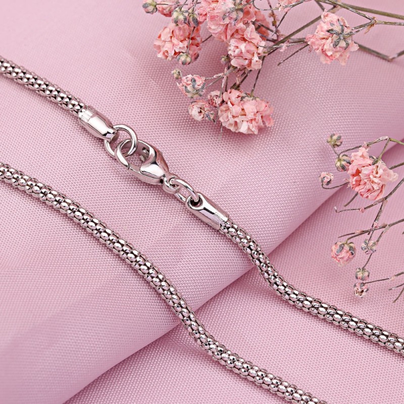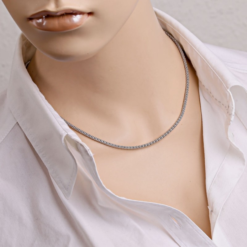 Bezaubernde voluminöse Röhrenkette aus 925er-Silber, handgefertigtes Fantasiegeflecht mit Rhodinierung.