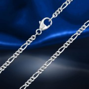 Klassische Kette aus 925º-Silber im Figaro-Geflecht mit Diamantbearbeitung und rhodiniert. „Figaro“ ist eine Kombination aus langen und kurzen Gliedern. Diese Produkte sind für Vertreter jeden Alters und Geschlechts geeignet und sehen sowohl im Alltag als auch beim Ausgehen zu einer Abendveranstaltung großartig aus. Eine mit der Figaro-Webtechnik hergestellte Kette oder ein Armband ist ein tolles Geschenk für jeden Anlass, da diese Art von Produkt immer das Auge erfreut, zu jedem Kleidungsstil passt und niemanden gleichgültig lässt.