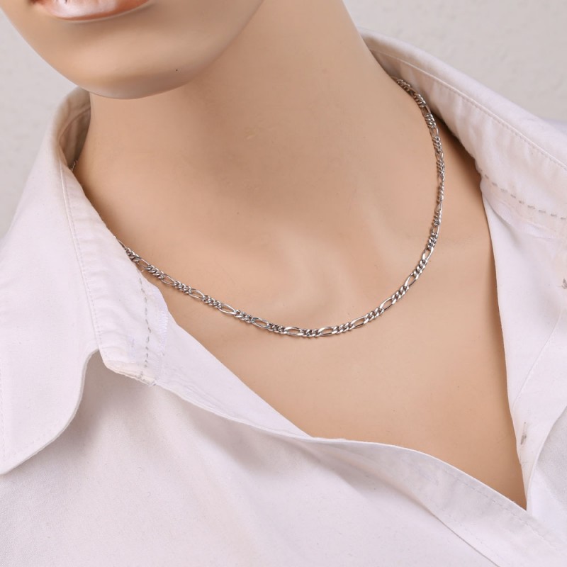 Klassische Kette aus 925º-Silber im Figaro-Geflecht mit Diamantbearbeitung und rhodiniert. „Figaro“ ist eine Kombination aus langen und kurzen Links. Diese Produkte sind für Vertreter jeden Alters und Geschlechts geeignet und sehen sowohl im Alltag als auch beim Ausgehen zu einer Abendveranstaltung großartig aus. Eine mit der Figaro-Webtechnik hergestellte Kette oder ein Armband ist ein tolles Geschenk für jeden Anlass, da diese Art von Produkt immer das Auge erfreut, zu jedem Kleidungsstil passt und niemanden gleichgültig lässt.
