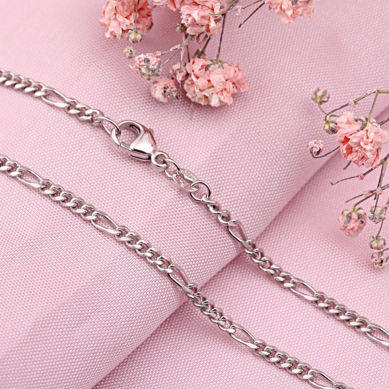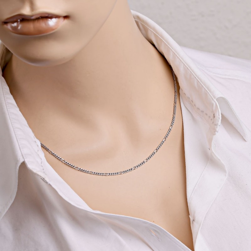Klassische Kette aus 925º-Silber im Figaro-Geflecht mit Diamantbearbeitung und rhodiniert. „Figaro“ ist eine Kombination aus langen und kurzen Gliedern. Diese Produkte sind für Vertreter jeden Alters und Geschlechts geeignet und sehen sowohl im Alltag als auch beim Ausgehen zu einer Abendveranstaltung großartig aus. Eine mit der Figaro-Webtechnik hergestellte Kette oder ein Armband ist ein tolles Geschenk für jeden Anlass, da diese Art von Produkt immer das Auge erfreut, zu jedem Kleidungsstil passt und niemanden gleichgültig lässt.