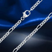 Klassische Kette aus 925º-Silber im Figaro-Geflecht mit Diamantbearbeitung und rhodiniert. „Figaro“ ist eine Kombination aus langen und kurzen Gliedern. Diese Produkte sind für Vertreter jeden Alters und Geschlechts geeignet und sehen sowohl im Alltag als auch beim Ausgehen zu einer Abendveranstaltung großartig aus. Eine mit der Figaro-Webtechnik hergestellte Kette oder ein Armband ist ein tolles Geschenk für jeden Anlass, da diese Art von Produkt immer das Auge erfreut, zu jedem Kleidungsstil passt und niemanden gleichgültig lässt.
