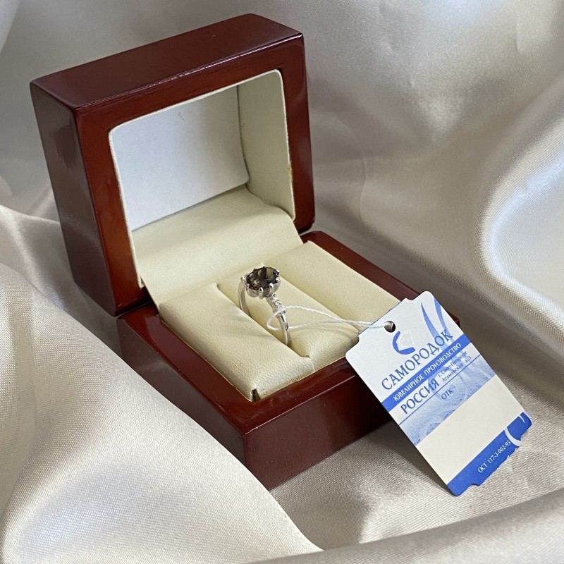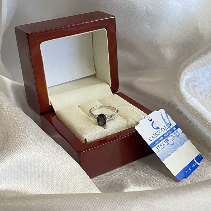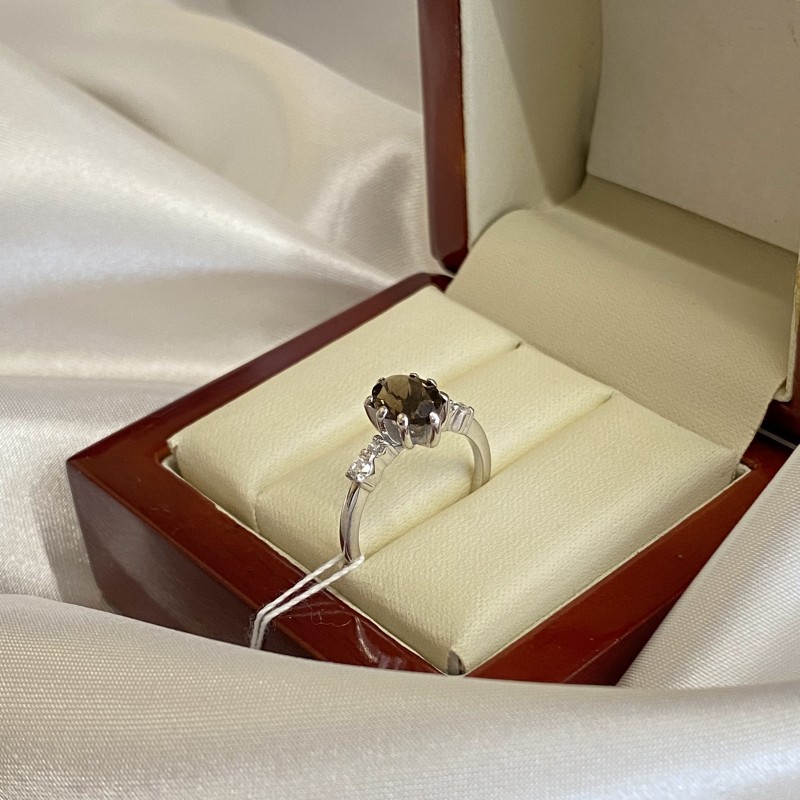 Einlage: 1 Rauchtopas oval 7,5 x 5,5 mm; Zirkonia Ø 1,5 mm