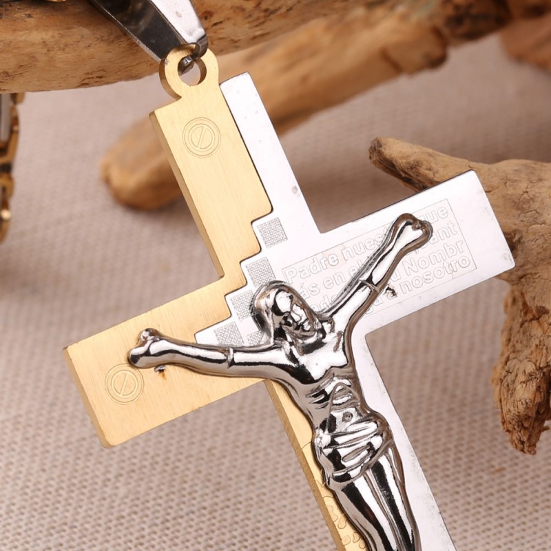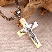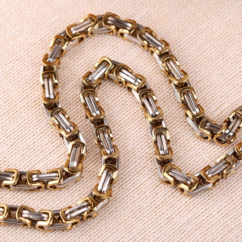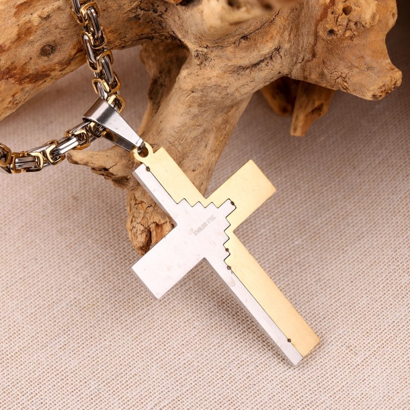 Eine Herrenhalskette ist ohne Zweifel das beliebteste Accessoire bei Männern jeden Alters. Viele Menschen tragen gerne Ketten; dieses Accessoire betont sehr gut den männlichen Hals und passt sowohl zu einem T-Shirt als auch zu einem klassischen Hemd. Die Ketten bestehen aus Schmuckstahl mit einer verschleißfesten Beschichtung. Schmuck aus 316L-Schmuckstahl rostet nicht, oxidiert nicht und ist absolut gesundheitlich unbedenklich! Die Royal Weave-Kette aus Gelbgold und Silber ist mit einem großen Anhänger in Form eines Kreuzes mit Kruzifix verziert!