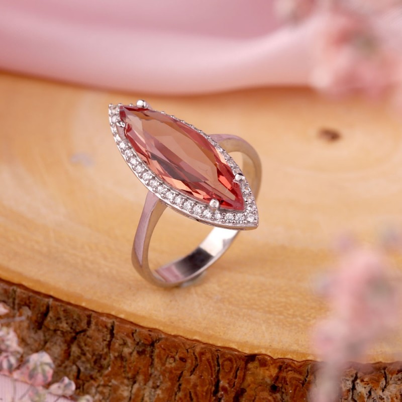 Einsatz: Zirkonia Ø 1,0 mm, 1 Marquise-Sultanit 20,0 mm x 7,0 mm