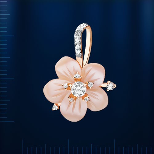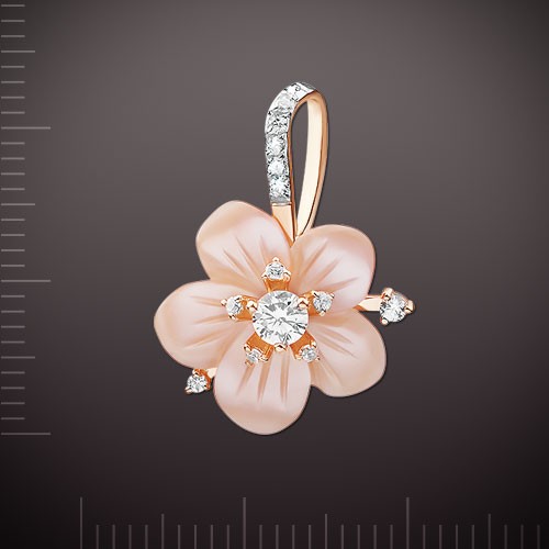 Einsätze: rosa Perlmutt 15,0 mm, 11 Zirkonia ¢ 1,25 mm, 1 kubischer Zirkon ¢ 1,75 mm, 1 kubischer Zirkon ¢ 1,75 mm, 1 kubischer Zirkon ¢ 3,5 mm span> span>