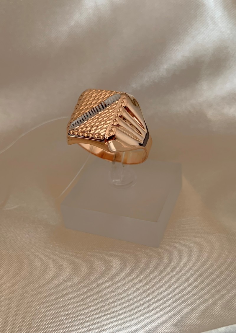 Κομψό ανδρικό δαχτυλίδι από ρώσικο λευκό/κόκκινο χρυσό 585°, επί ρόδιο. Διαμάντι κόψιμο!
