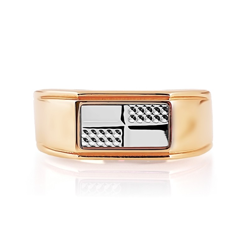 Ανδρικό δαχτυλίδι ρωσικό χρυσό 585 στη Γερμανία. Κομψό ανδρικό δαχτυλίδι από κόκκινο χρυσό 585 με λευκούς χρυσούς τόνους σε διαμάντι.