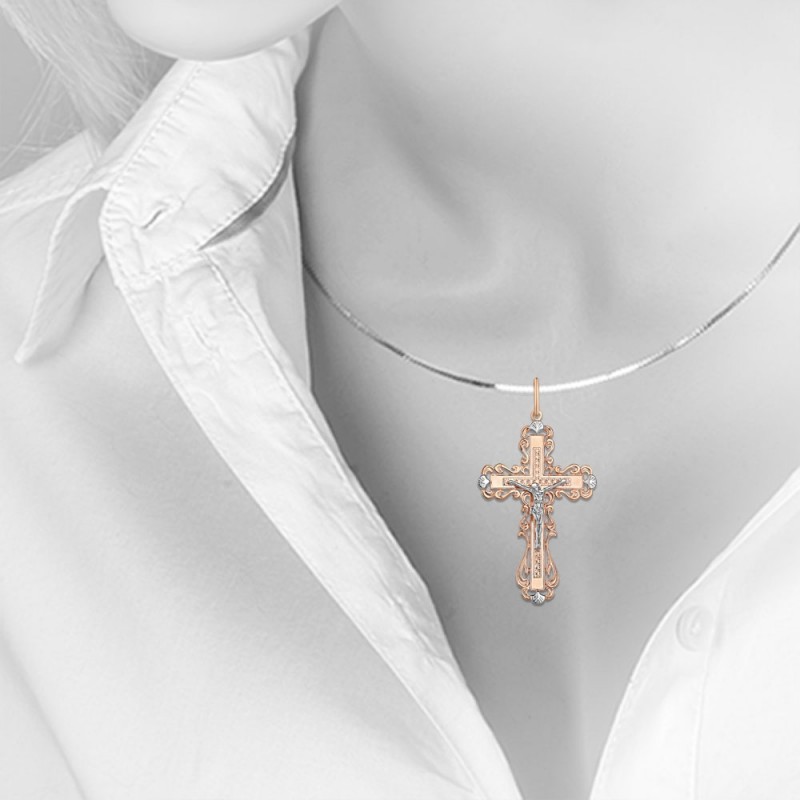 Χρυσός σταυρός μενταγιόν με σταυρό από λευκό/κόκκινο χρυσό 585. Στο πίσω μέρος του σταυρού υπάρχει η επιγραφή «Αποθήκευση και Διατήρηση». Στην κορυφή του σταυρού υπάρχει ένας δακτύλιος για κορδόνι ή αλυσίδα. Δεν γρατσουνίζεται όταν φοριέται.