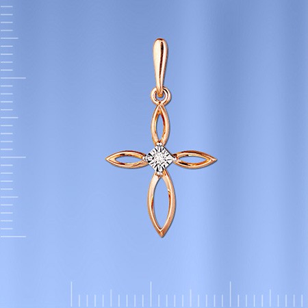 Kreuzanhaenger με διαμάντι ρώσικο χρυσό 585. Ο κόκκινος χρυσός σταυρός -άνθρωπος Henter είναι διακοσμημένο στη μέση με ένα διαμάντι σε διαμάντια -σθεναρά λευκά χρυσά σύνορα. Στην κορυφή του σταυρού υπάρχει ένα δαχτυλίδι για ένα καλώδιο ή αλυσίδα. Δεν ξύσιμο όταν φοράτε.