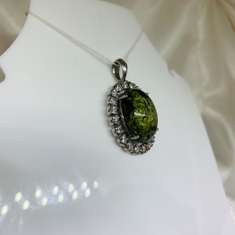 Ασημένιο μενταγιόν. Serpentine & Cubic Zirconia