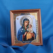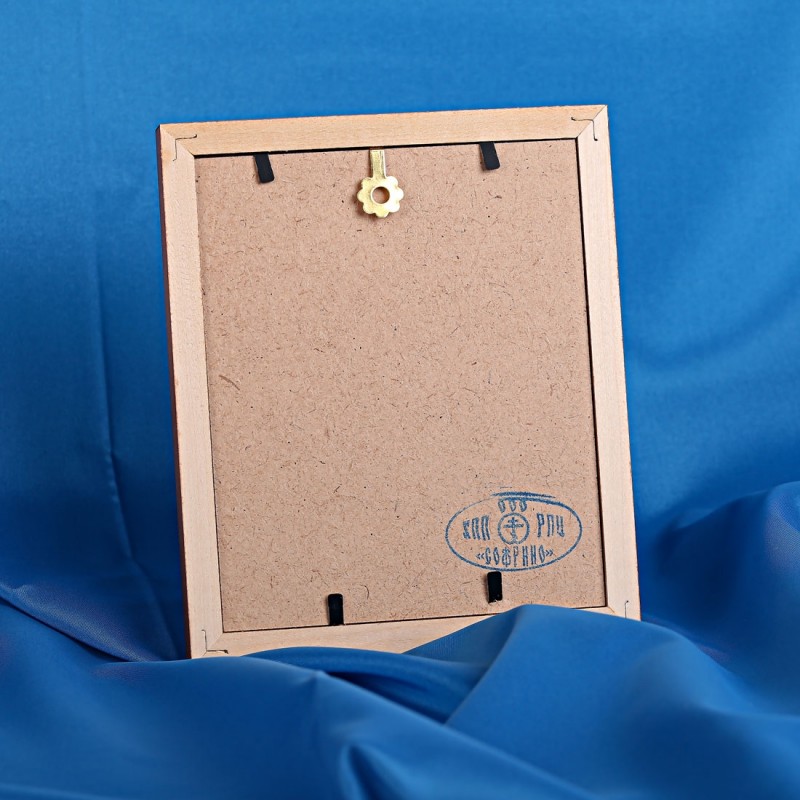 Ruaaiache εικονίδιο στο ξύλινο πλαίσιο. Κομψώ με "χρυσά" και "ασημένια" χρώματα. Η ρωσική εικόνα βρίσκεται κάτω από γυαλί, το οποίο την προστατεύει από τη σκόνη και τη λεύκανση. Στο πίσω μέρος του εικονιδίου υπάρχει μια πειρατεία για την τοποθέτηση του εικονιδίου στον τοίχο.