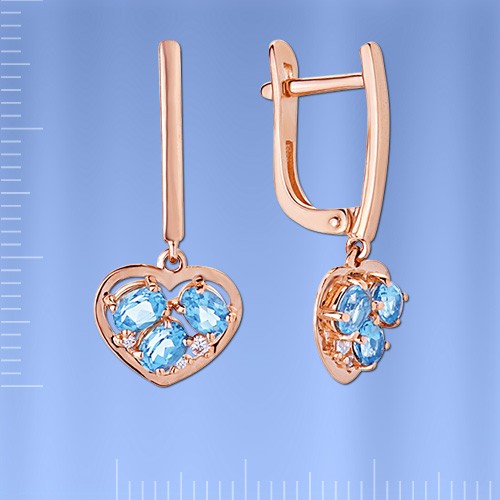Σκουλαρίκια από κόκκινο χρυσό 585° διακοσμημένα με 6 τοπάζι (4,0 x 3,0 mm 0,24), 2 φιανίτες ¢ 1,5 mm 0,012, 4 φιανίτες ¢ 1,0 mm 0,008