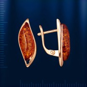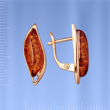 Όμορφα σκουλαρίκια από μασίφ 585 (14kt) ρωσικά Κόκκινο χρυσό σχεδιασμένο με μεγάλο, λεπτεπίλεπτο κεχριμπάρι (περίπου 15 x 7 mm). Το ορθογώνιο κεχριμπάρι δημιουργεί μια αρμονική γοητεία σε ζεστούς τόνους. Ολόκληρα τα σκουλαρίκια διαστάσεων περίπου 22 x 7 mm, είναι εξοπλισμένα με καρφίτσα και πτυσσόμενο μοχλό και μπορούν να φορεθούν μόνο με τρυπημένο. λοβούς αυτιών.