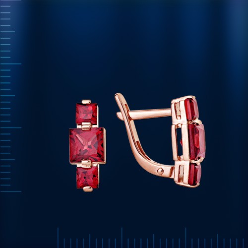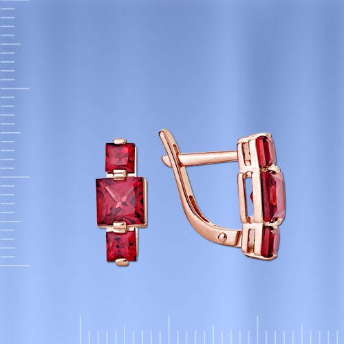 Σκουλαρίκια από κόκκινο χρυσό 585° διακοσμημένα με 2 γρανάτες (5,0 x 5,0 mm 0,318 ct), 4 γρανάτες (3,0 x 3,0 mm 0,152 ct)