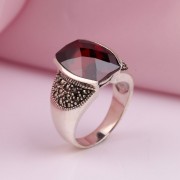 Όμορφο δαχτυλίδι από μαυρισμένο ασήμι 925 με μαγευτικό γρανάτη και βαθιά ένθετα μαρκασίτη. Ένα τέτοιο δαχτυλίδι θα τονίσει τη φινέτσα της γεύσης και θα σας κάνει να νιώσετε σαν πραγματική βασίλισσα.