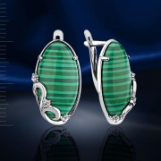 Ασημένια σκουλαρίκια "Sandia". Μαλαχίτης και κυβική ζιρκονία