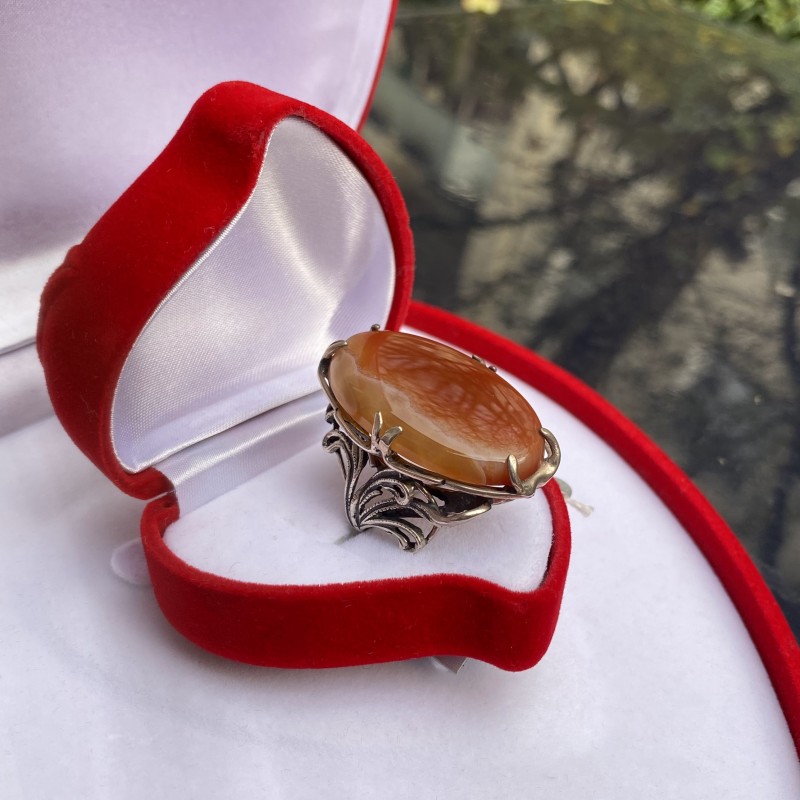 Δαχτυλίδι «Γίγαντας» από μαυρισμένο ασήμι 925 με μεγάλο ένθετο από όμορφο αχάτη. Ένα δαχτυλίδι στο οποίο γίνεται αισθητό το πνεύμα της πολυτέλειας και της κομψότητας, της αριστοκρατίας και του μεγαλείου.