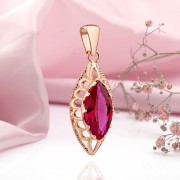 Εξαιρετικό μενταγιόν σε κόκκινο χρυσό 585 με ένθετα από μαγευτικό ρουμπινί κορούνδιο! Δώστε έμφαση στην κομψότητα του γούστου σας, την τρυφερότητα και τη θηλυκότητα της εικόνας και δώστε μια υπέροχη διάθεση!