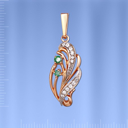 Μενταγιόν από Ρωσικό κόκκινο/λευκό χρυσό 585°. Το μενταγιόν είναι διακοσμημένο με φιανίτες. Ύψος με οπή περίπου 35 mm, πλάτος περίπου 13 mm