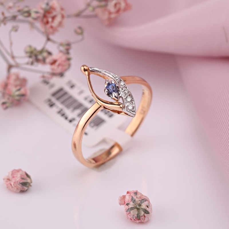 Elegant ring made of 585 red/white gold with diamonds and sapphire. Beautiful gift for your loved one!
