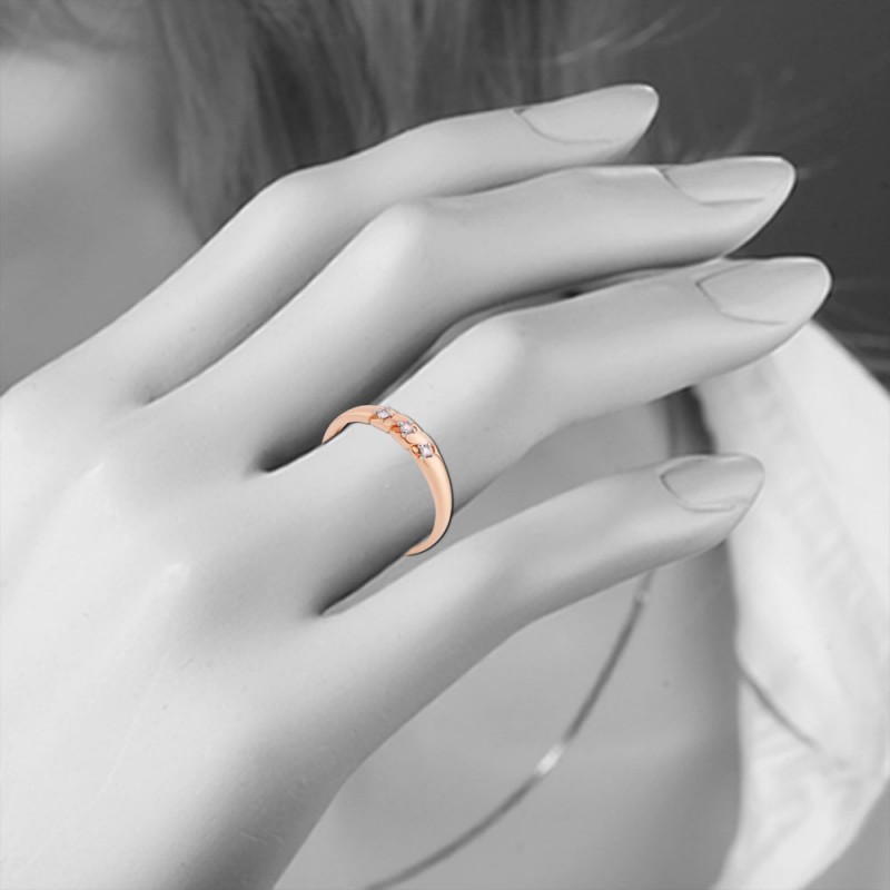 A ring made of Russian red gold 585 sample with 3 brilliants 57 0.048 4/5 A