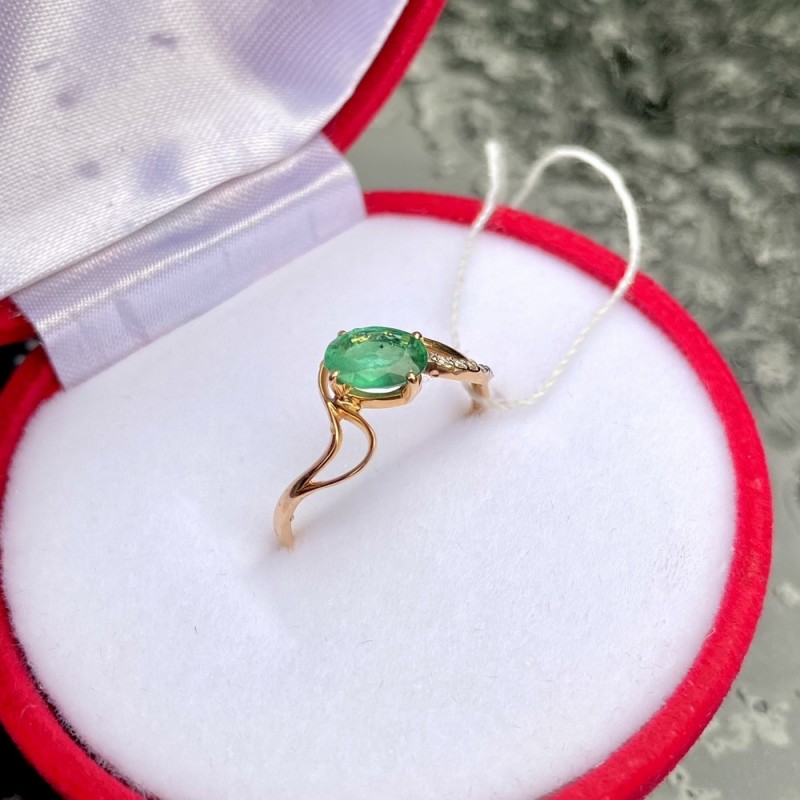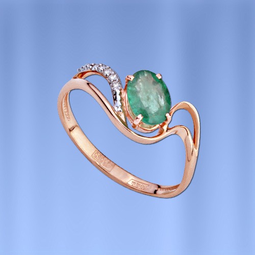 Ring made of 585° red and white gold decorated with 5 brilliant-cut diamonds 57 1.0 3/5A 0.26 Ct; 1 Emerald 7.0 x 5.0 0.614