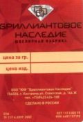 Each product has hallmarks tested by the State Hallmarking Office of the Russian Federation. In addition, each jewelry item is equipped with sealed certificate labels from the manufacturer.