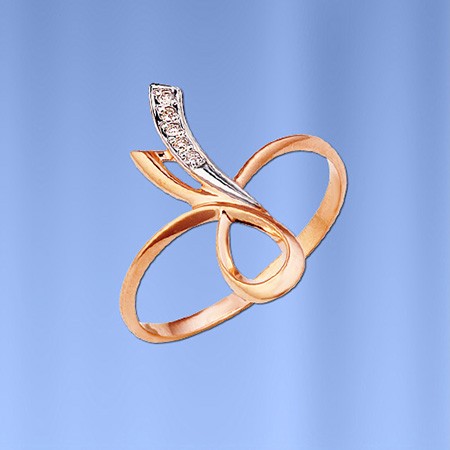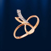 A ring made of Russian red/white gold 585º with 5 brilliant-cut diamonds 0.033 carat