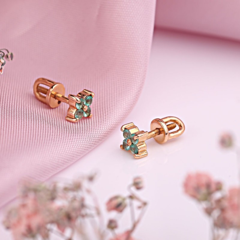 Elegant red gold earrings made of 585 red gold with beautiful emerald.