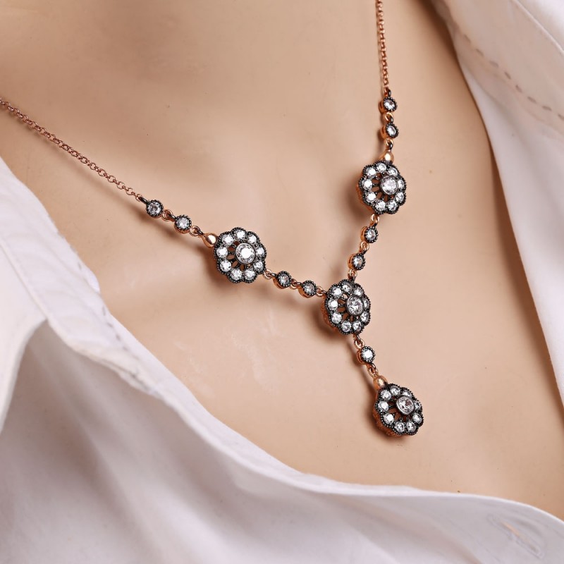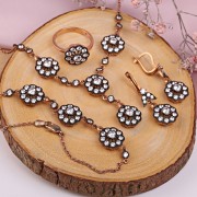 A delightful ethnic set made of red gold-plated blackened 925 sterling silver with inserts of sparkling zirconia! The combination of these enchanting stones gives the product a unique look and captivates the eye. Such a set will emphasize the tenderness, femininity and charm of its mistress!