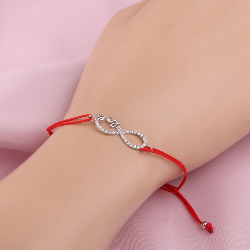 Charming red textile bracelet with silver mirror ends and 925 sterling silver zirconia insert. This bracelet impresses with its brightness and beauty, will decorate you and bring you great joy!